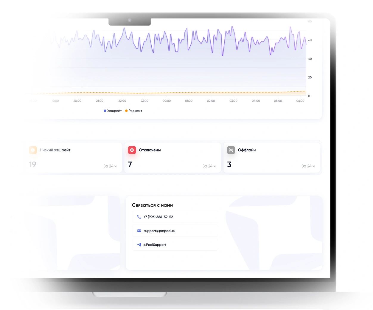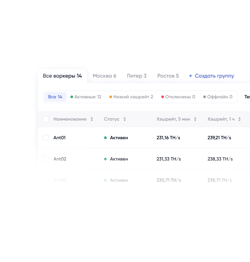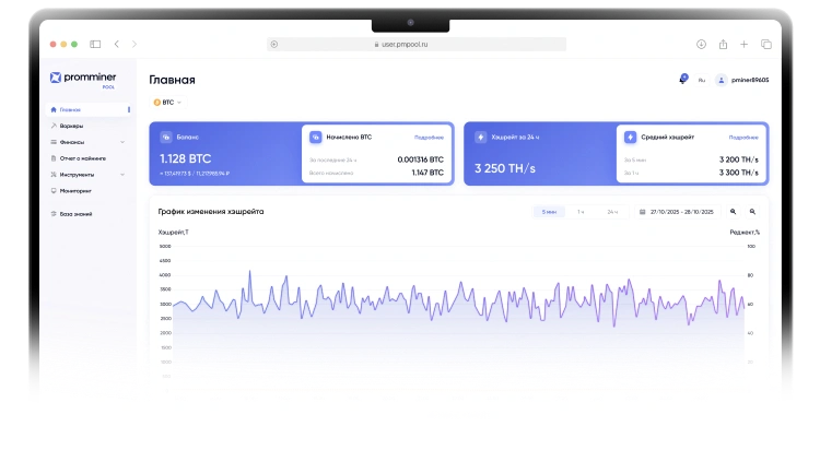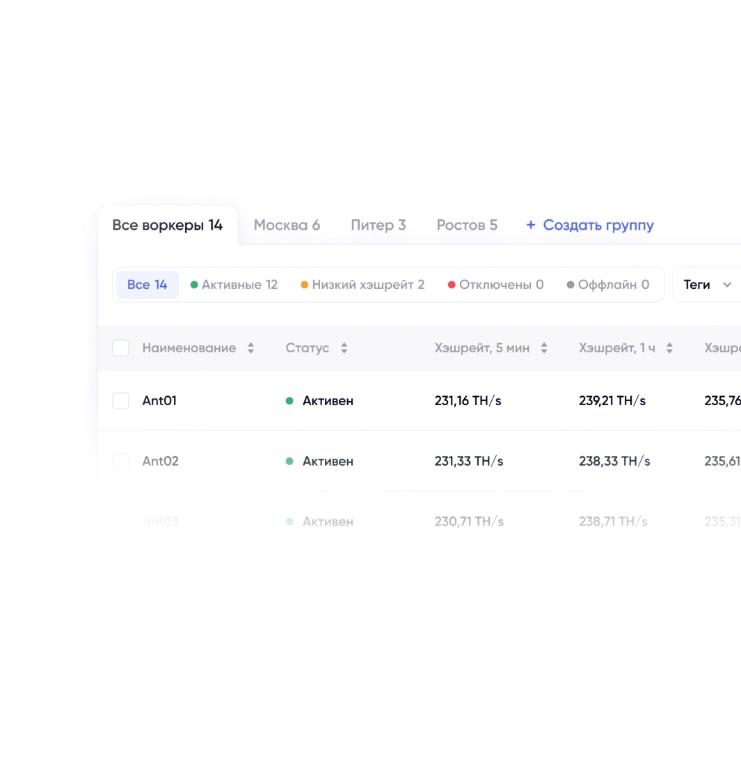 Следите за хэшрейтом и доходностью в реальном времени